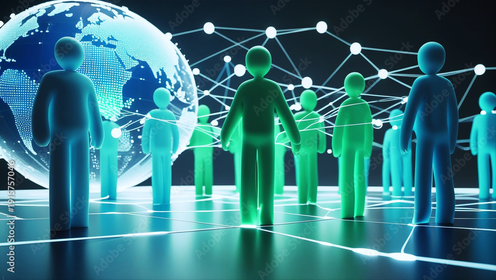Global Communication Concept with Stylized 3D Figures and Digital Network Earth Globe. Technology #1915757046