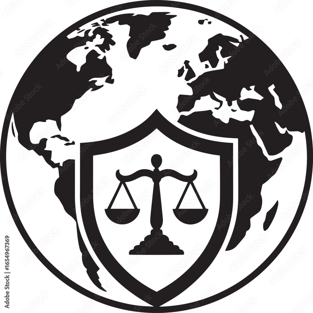 Global Justice Shield Emblem Symbolizing International Law and Order with Earth Silhouette #1654967369