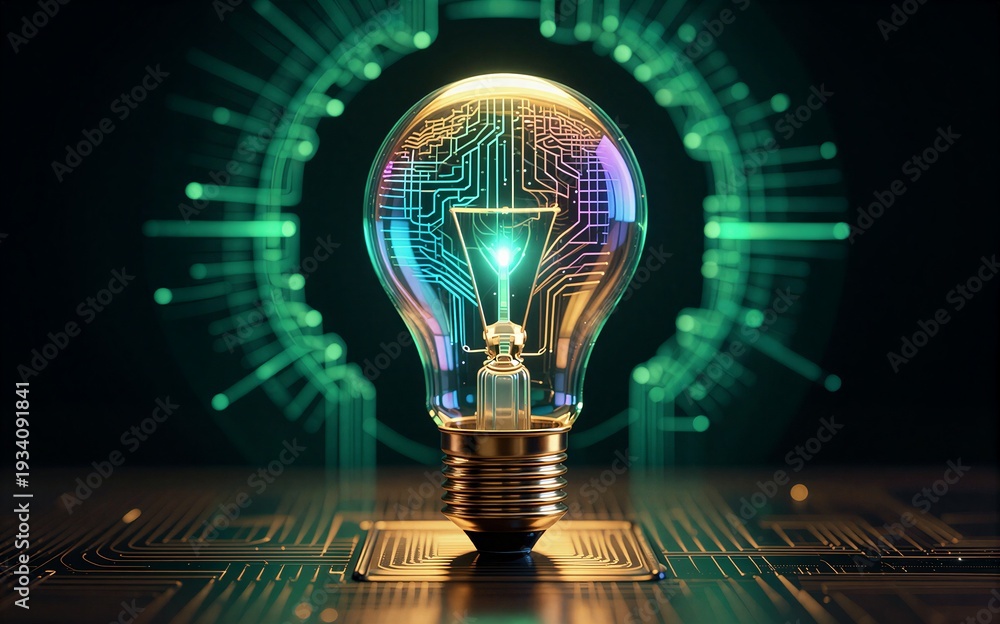 Glowing light bulb with circuit patterns symbolizing innovation #1934091841