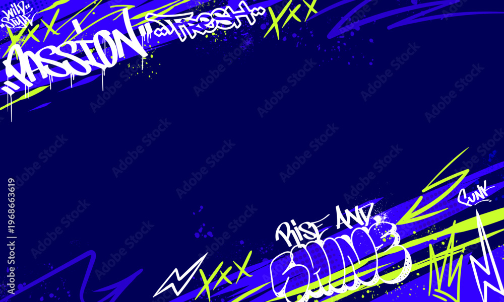 Graffiti background with throw-up and tagging hand-drawn style. Wallpaper graffiti art vector illustration #1968663619