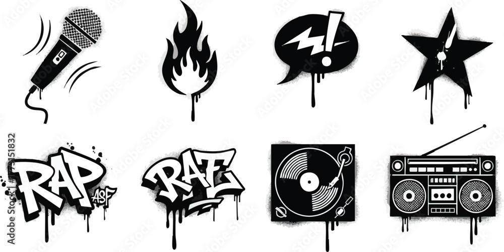 Graffiti Style Icons Representing Hip Hop Culture and Music Elements. #1773151832