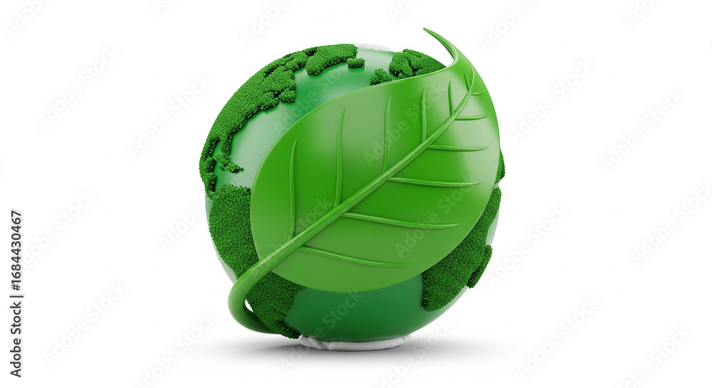 Green Earth Globe with Leaf Symbolizing Environmental Protection on Isolated transparent background #1684430467