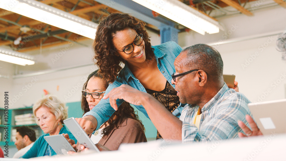 Group Of Retired Seniors Attending IT Class In Community Centre With Teacher #1753038091