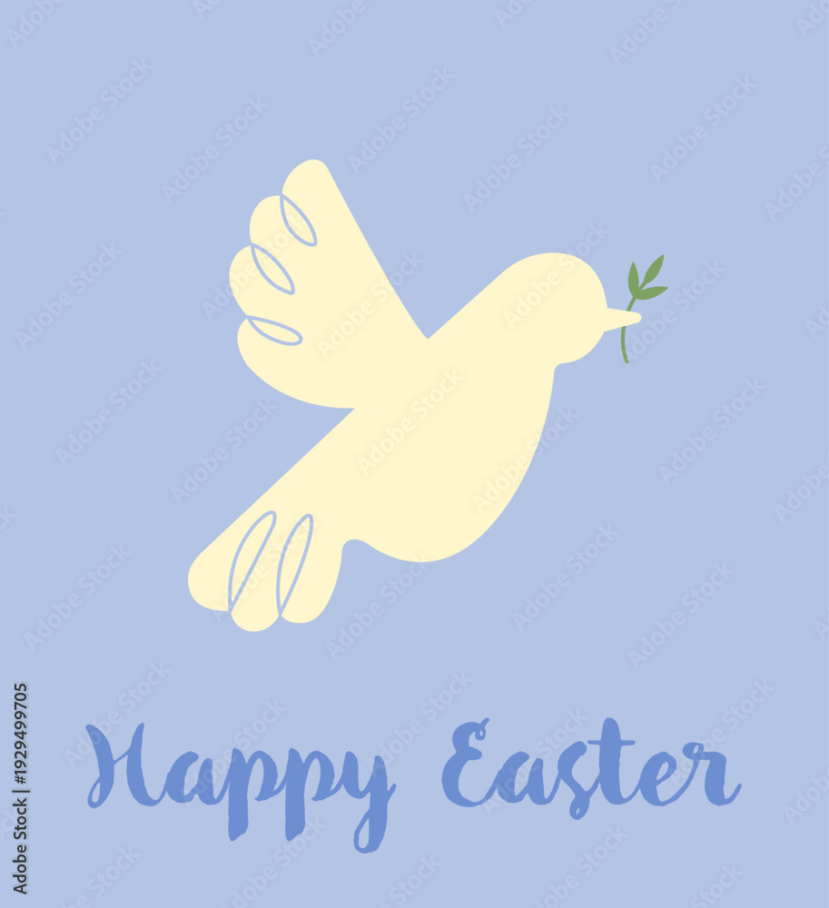 Happy Easter. Greeting card design with flying dove and a small olive branch. Vector illustration #1929499705