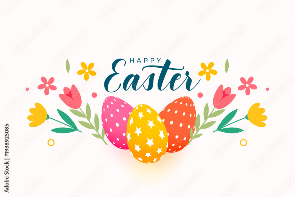 happy easter invitation background with patterned eggs and tulip flower #1938925085