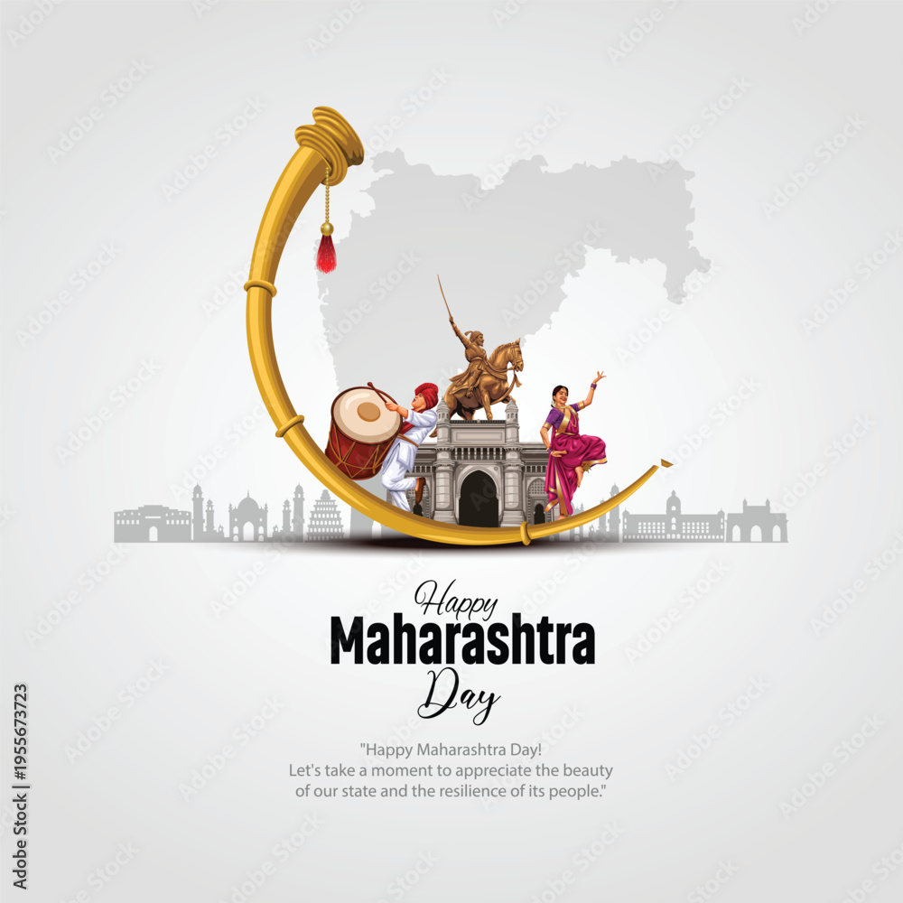 happy Maharashtra Day with Maharashtra map vector and outline background. abstract vector illustration design. #1955673723