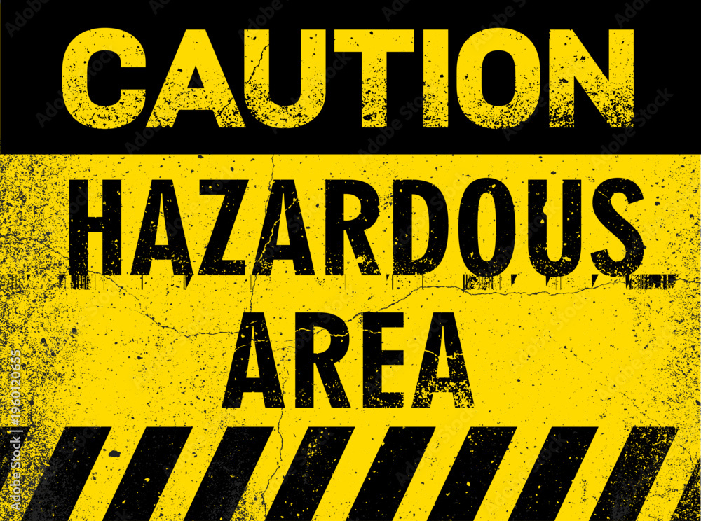Hazardous area vector rusted warning sign. Industrial danger symbol with grunge metal texture. Weathered safety sign with corrosion effect for construction, factory zones and caution design concepts. #1960120655