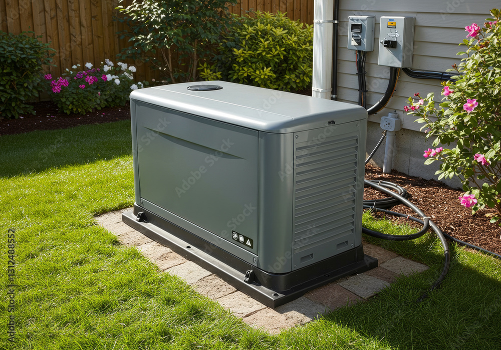 Home Standby Generator: Reliable Backup Power Solution - Ensuring peace of mind, this home standby generator provides continuous power during outages. Symbolising safety, security, reliability #1312488552