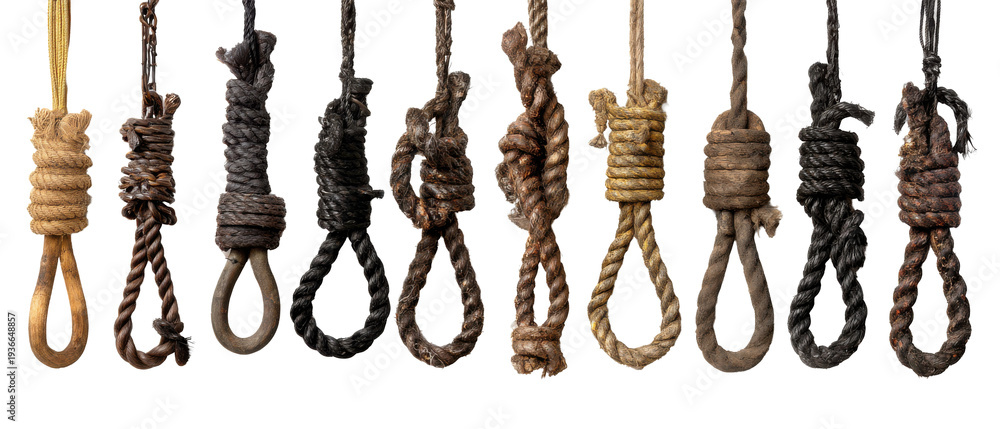 Horror noose collection set with old weathered ropes transparent background #1936648857