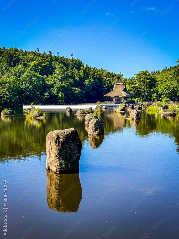 Hoshino Aomoriya lake and temple in Furumagiyama, Misawa, Aomori, Japan #1388748079