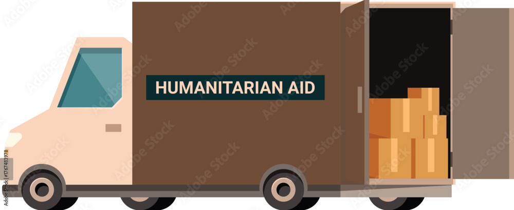 Humanitarian aid truck delivering emergency supplies, side view #1767483978