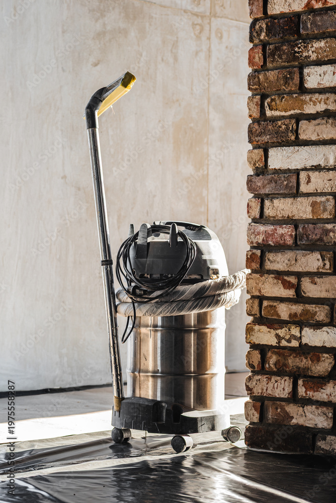 Industrial wet and dry vacuum cleaner in renovating room Professional vacuum cleaner in renovation interior for dust and debris removal #1975558287