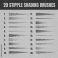 Ink scatter brush, stipple drawing and texturing. Fading gradient. Stippling, dotwork drawing, shading using dots. Halftone disintegration effect. White noise grainy texture. Vector illustration #1773479077