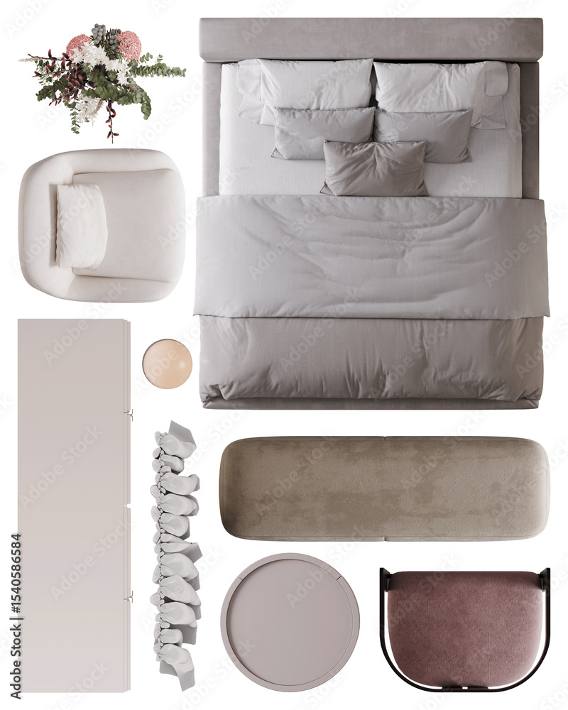 Interior Bedroom Design Furniture Pack – Top View, 3d rendering #1540586584
