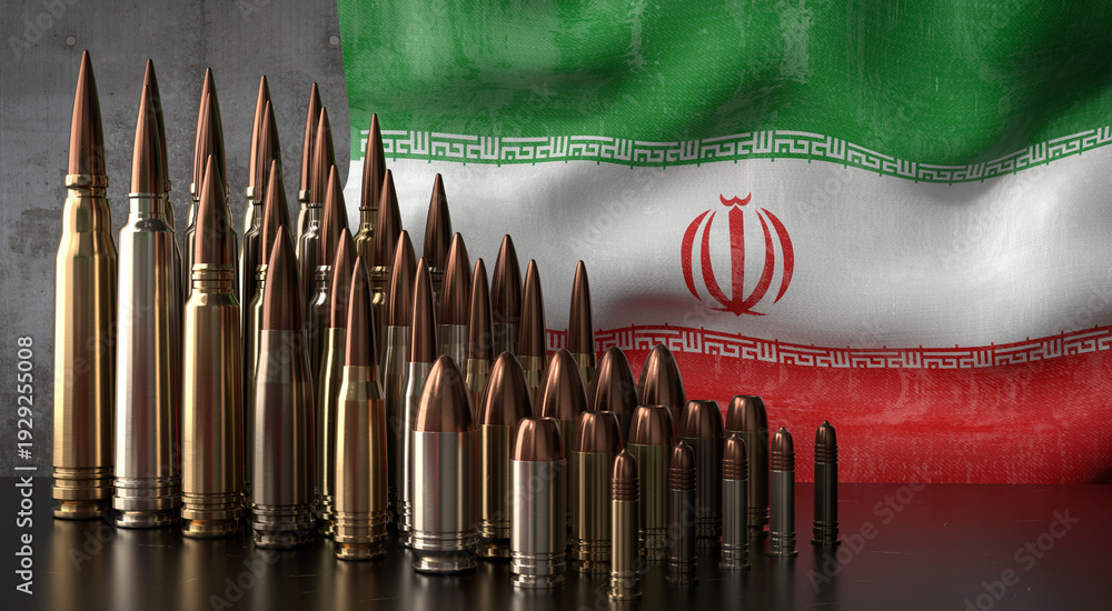 Iran - various projectiles and national flag - 3D illustration #1929255008