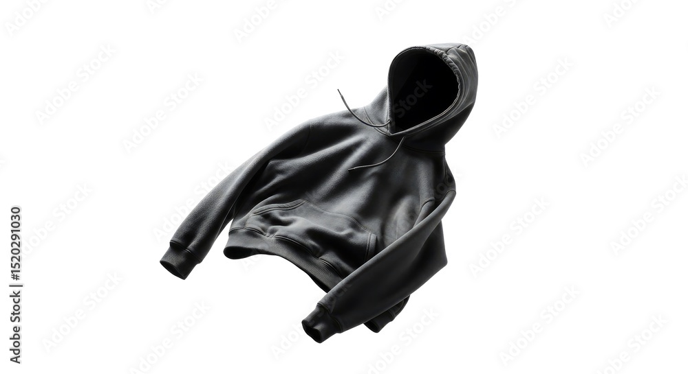 Isolated black hoodie floating with visible fabric texture details against a pure white background studio shot simple and clean #1520291030