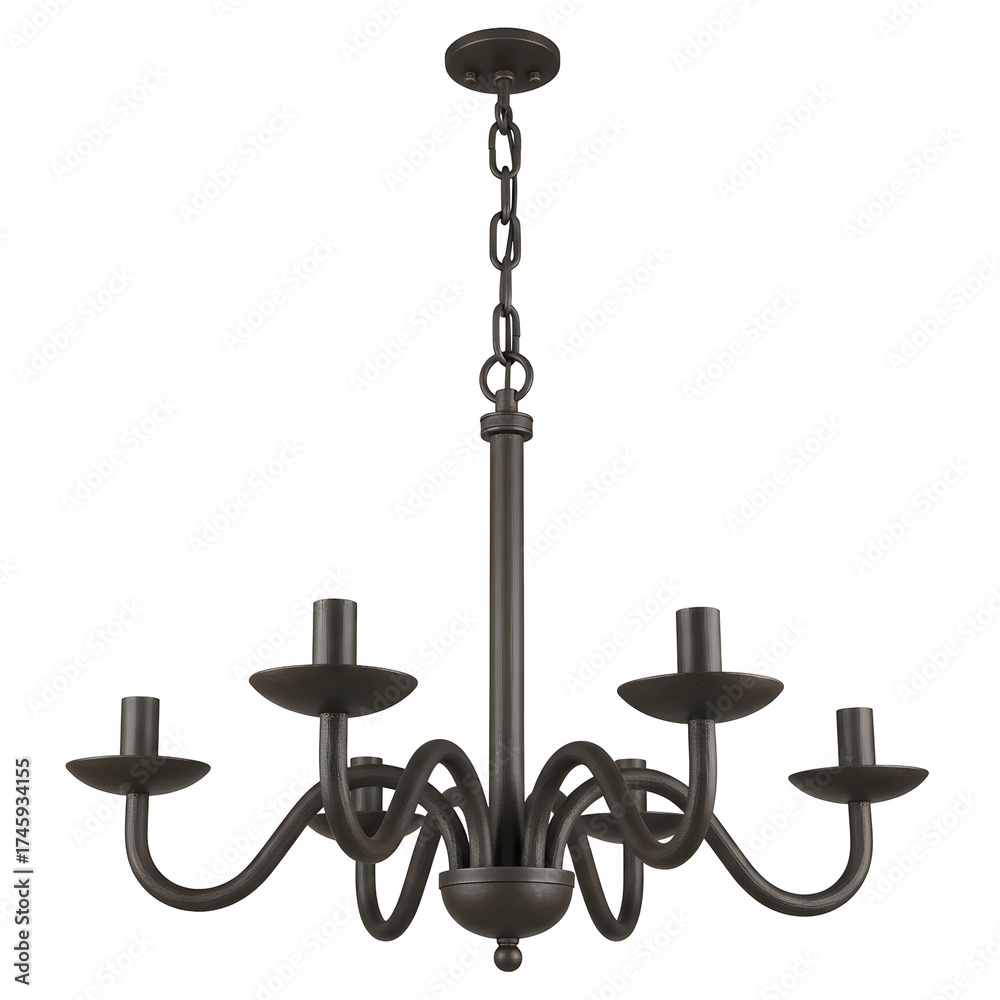 Isolated five light chandelier in a metal finish, ideal for home decor and interior design projects. It is on a transparent background for easy integration. #1745934155