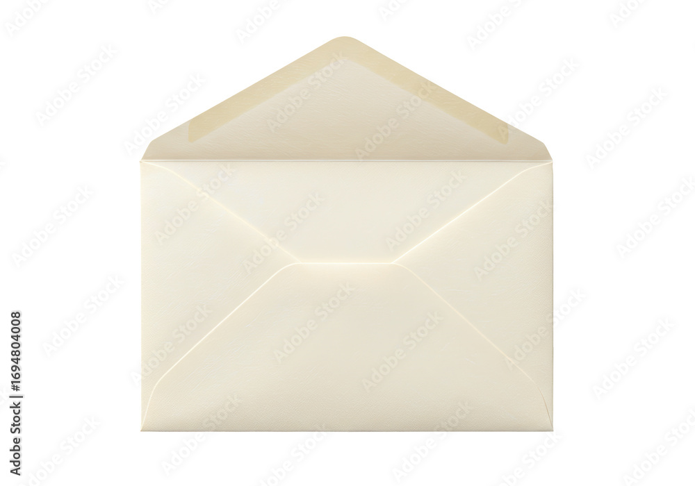 Isolated stationery envelope on a neutral surface open ready to be used to send letters or invitations #1694804008