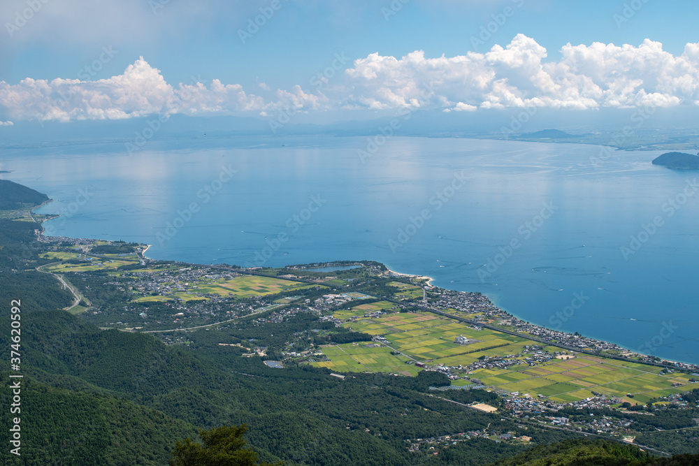 Lake Biwa and Omi-Maiko Beach, shot from Mt. Horai, Shiga Prefecture, Japan #374620592