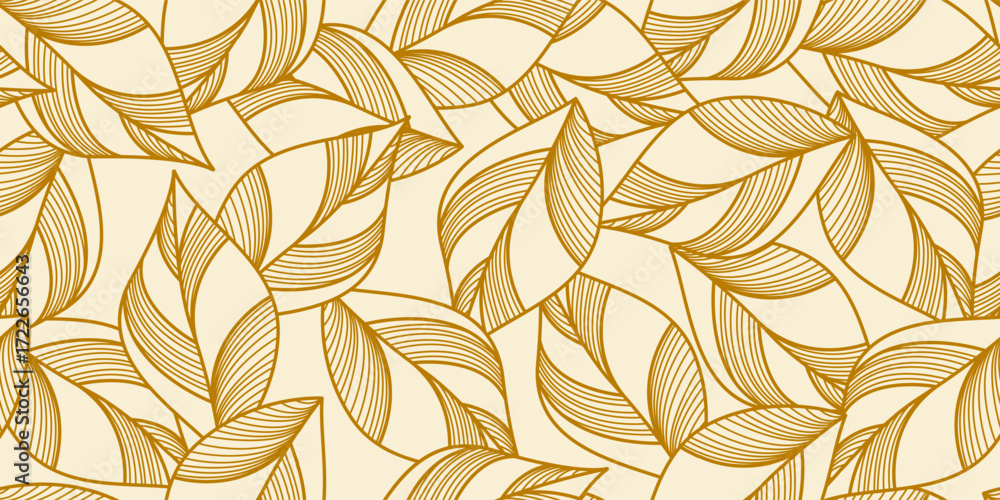 Line Art Leaf Pattern. Hand Drawn Floral Wallpaper Design. Botanical Vector Illustration. Leaves Print Template. Minimalist Elegant Background with Leaf Linear Ornament #1722656643