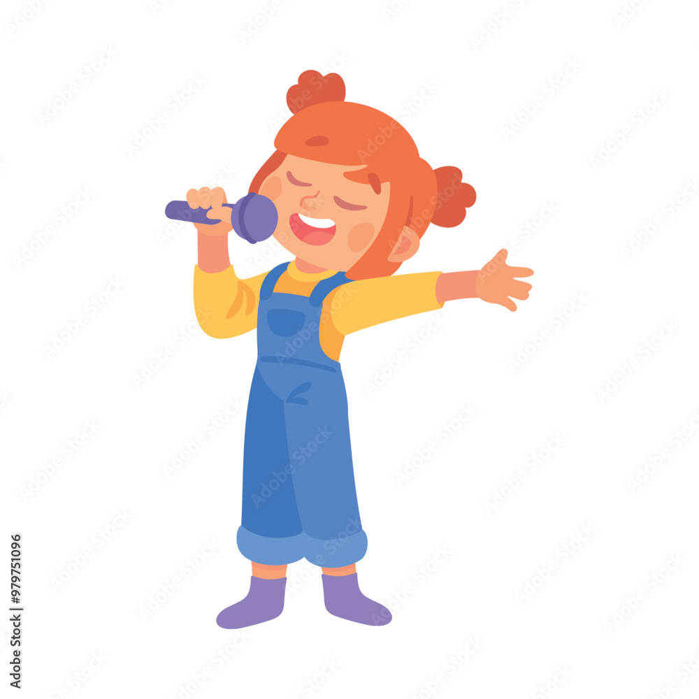 Little Girl Singing in Microphone on Stage Vector Illustration #979751096