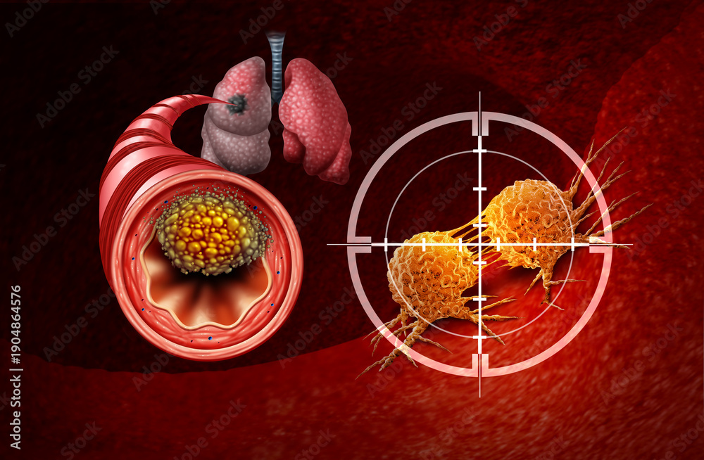 Lung Cancer Treatment and Small Cell Lung Cancers as a Central malignant tumor growth as a Metastasis growing in the lungs from a bronchi as a bronchial disease spreading in the human body as a medica #1904864576