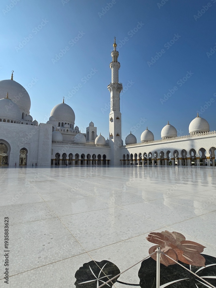Main courtyard of Sheikh Zayed Grand Mosque with floral marble mosaics #1935883623