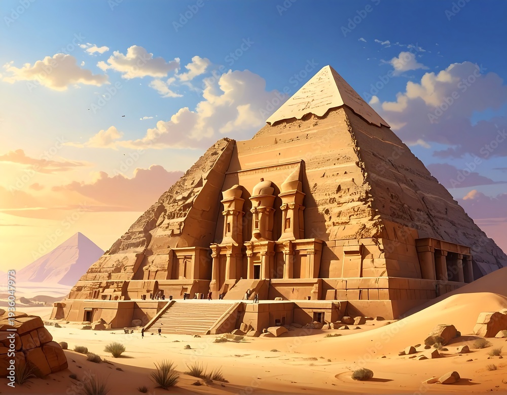 Majestic Egyptian Pyramid Complex in Golden Desert Landscape. #1936047973