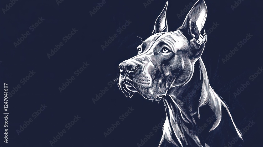Majestic Great Dane dog portrait, artistic, monochrome, elegant, canine. #1247041607