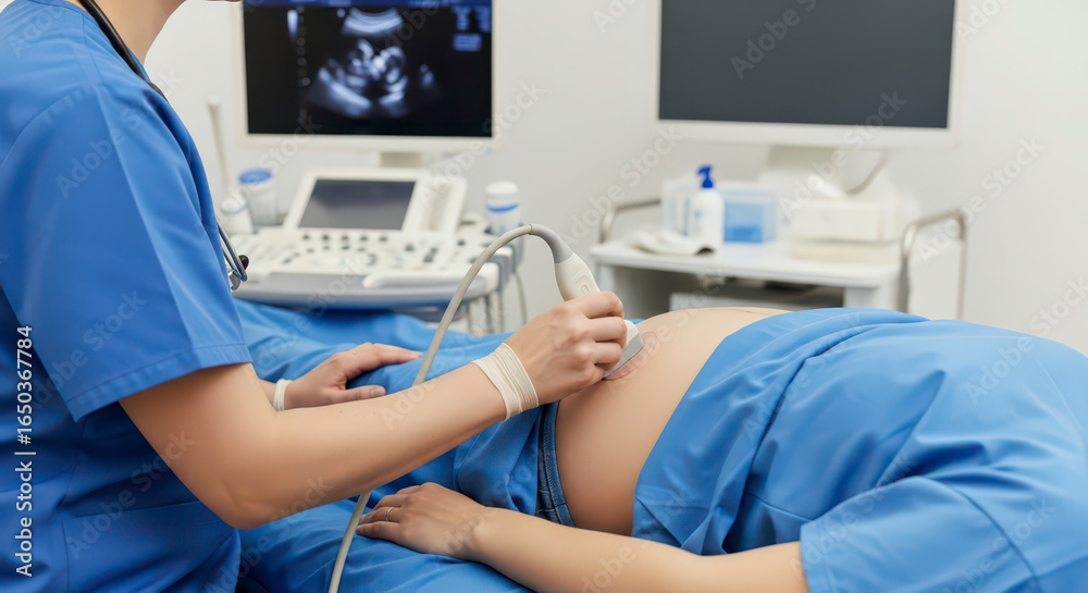 Medical professional performing pregnancy ultrasound on expectant mother #1650367784