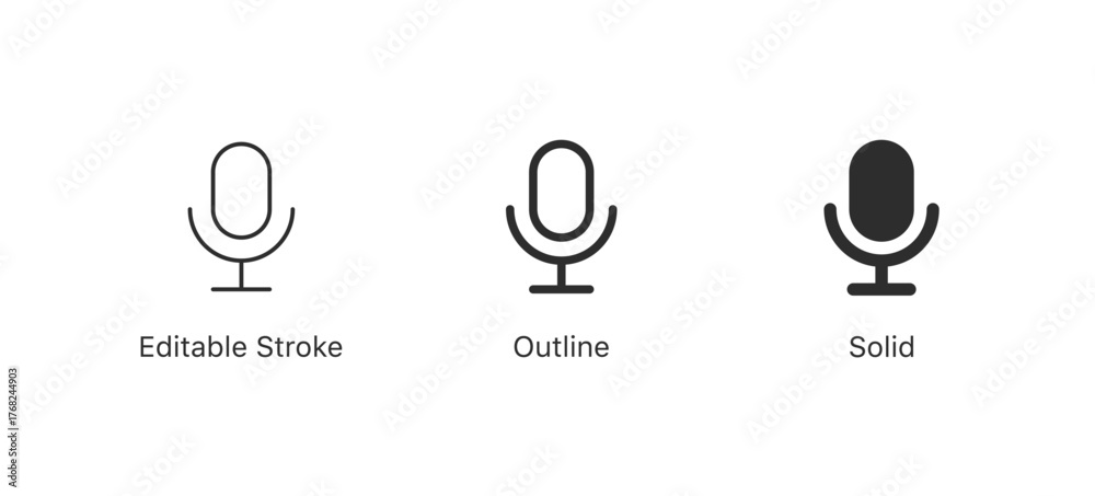 Microphone icon set vector mic icon symbol ; Podcast microphone web icon ; record, audio, sound, voice icons. editable stroke outline style for app user interface and web vector elements #1768244903