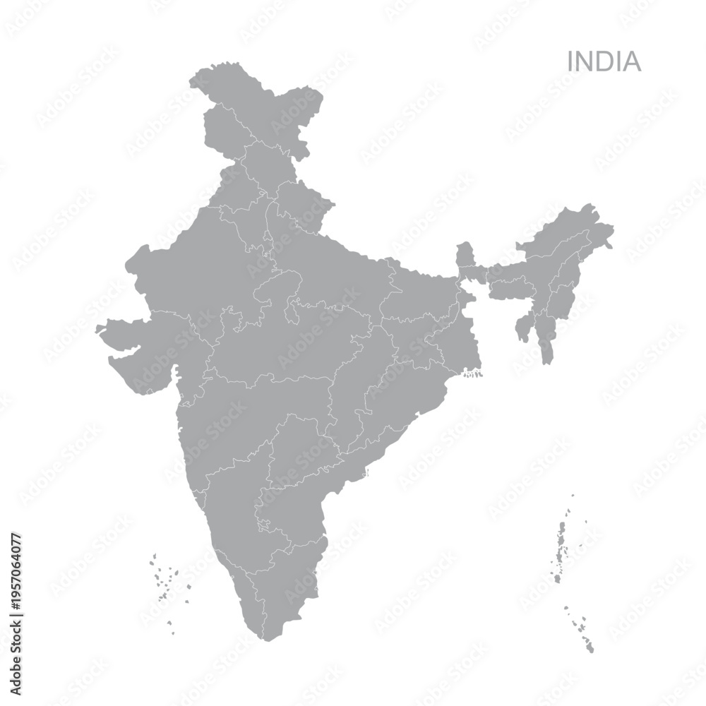 Minimalist Map of India with State and Union Territory Borders #1957064077