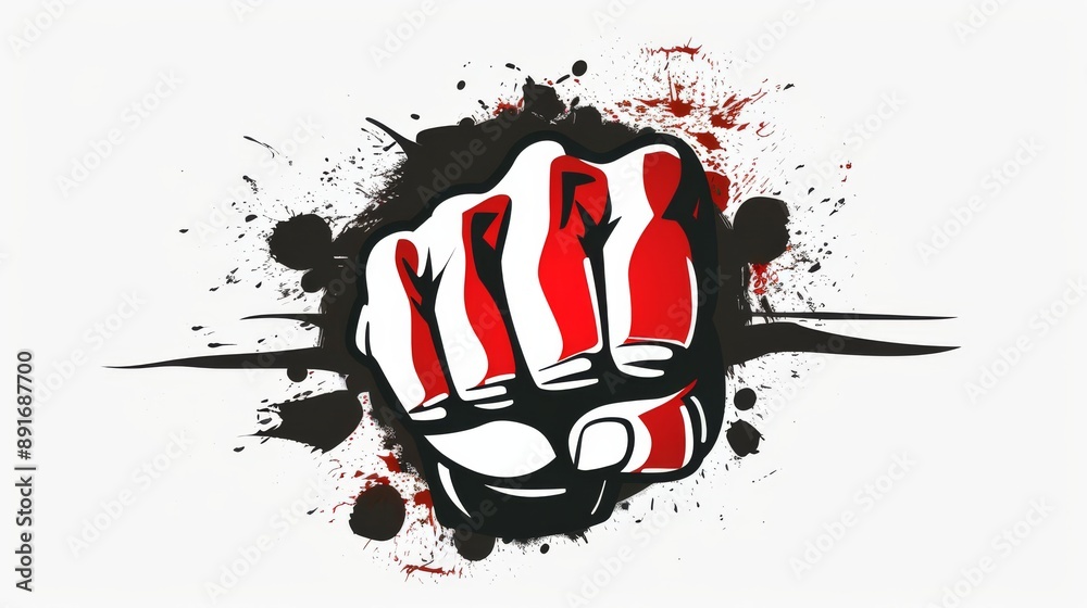 Mixed Martial art logo with a fist. Fitness equipment isolated on white. Photo realistic photo. #891687700