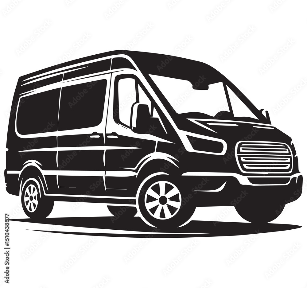 Modern Passenger Van Minibus Vector Illustration Black and White Transport Art #1510438877