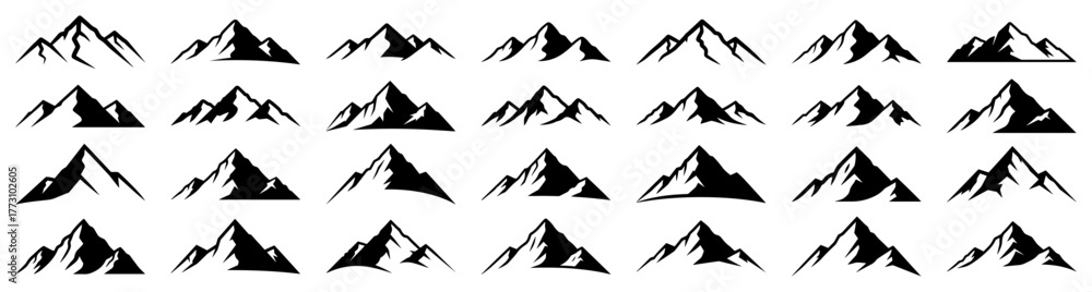 Mountain Peaks Silhouette Icons Set Alpine Ridge Logo Elements Vector #1773102605