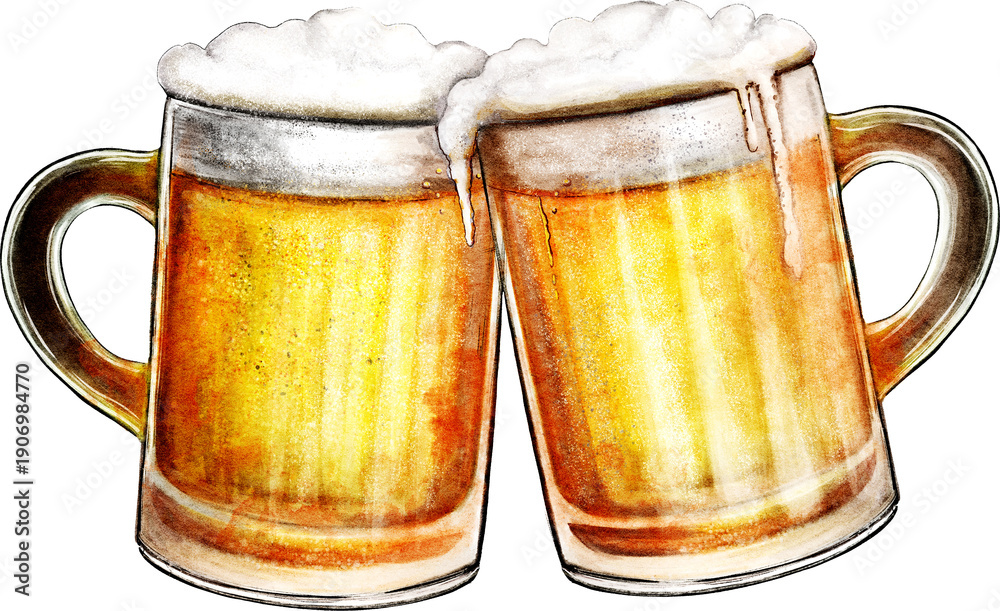 mugs of beer watercolor illastration isolated on white background #1906984770