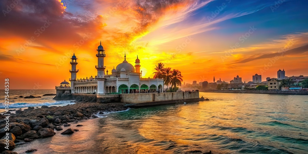 Mumbai Haji Ali Dargah Sunset Zoom Out - AI Photo #1427548538