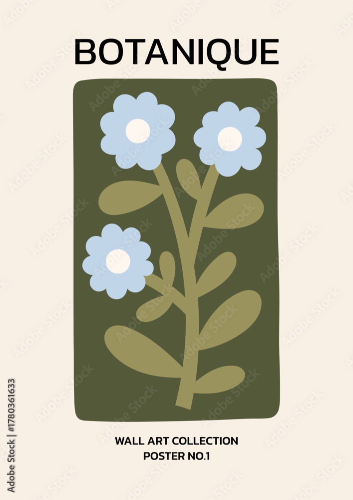 Neutral colors floral vector illustration. Minimalist botanical poster design with simple flowers #1780361633