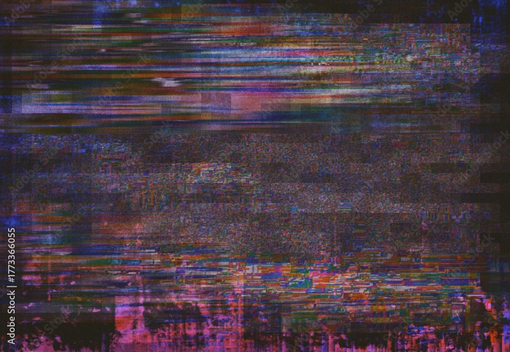 Noisy retro film photo overalay effect background vhs glitch screen distorted flickering lines hd tv signal problem, Abstract grainy analog VCR screen effect noise grain #1773366055
