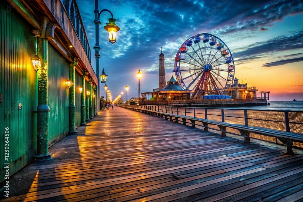 Ocean City NJ Boardwalk Night Photography - Urban Exploration, Decaying Beauty #1230364506