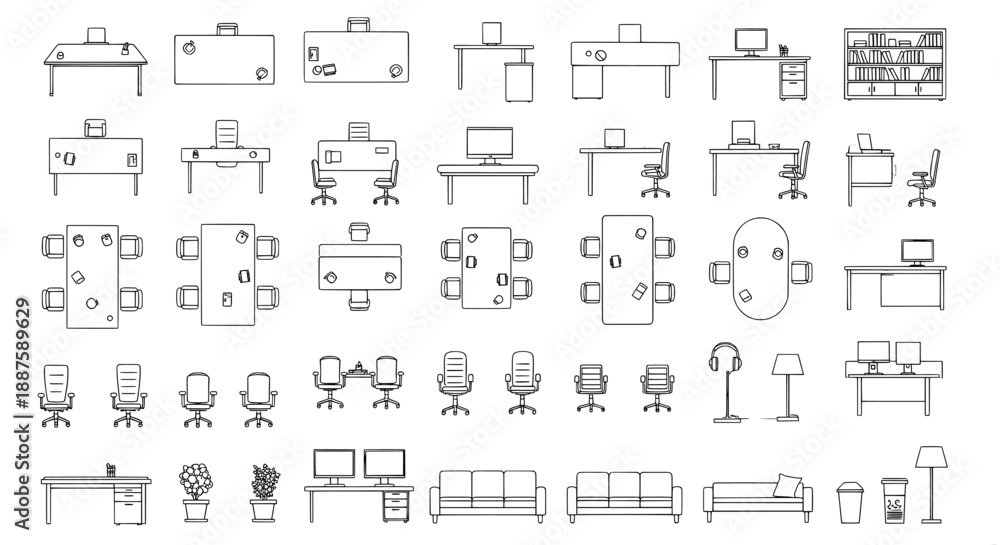 Office furniture vector icons from top view #1887589629