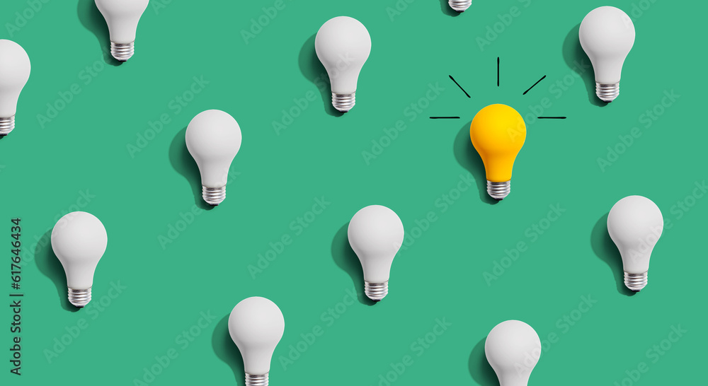 One out unique idea light bulb concept - Flat lay #617646434