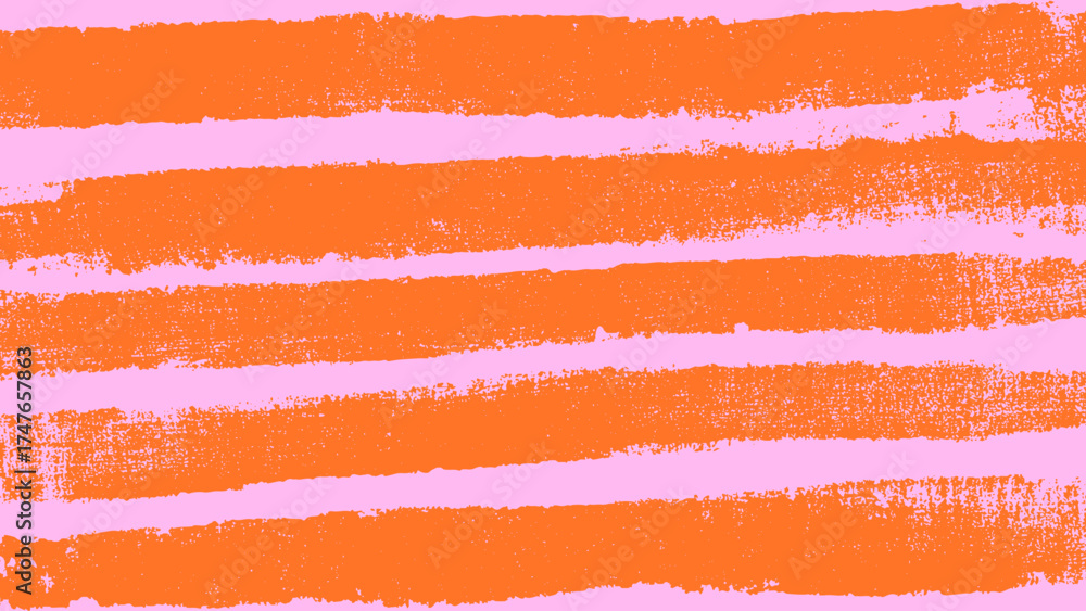 Orange brush stripes with pink background. Rough chalk texture with uneven strokes and smudged edges. Vector roller paint pattern for modern posters and fabrics. #1747657863