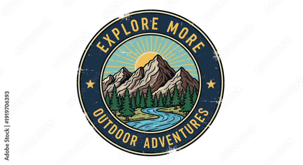 Outdoor Adventures Logo with Mountain Landscape. #1919706393