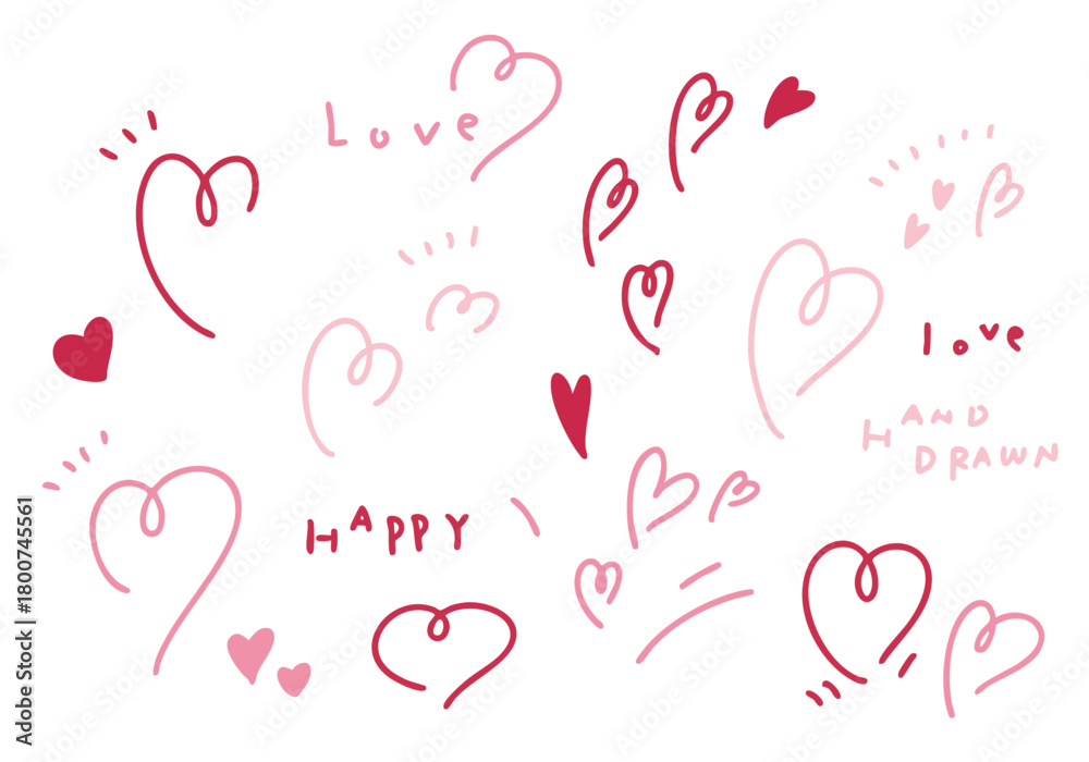 手描きのラフなハートの素材セット #1800745561