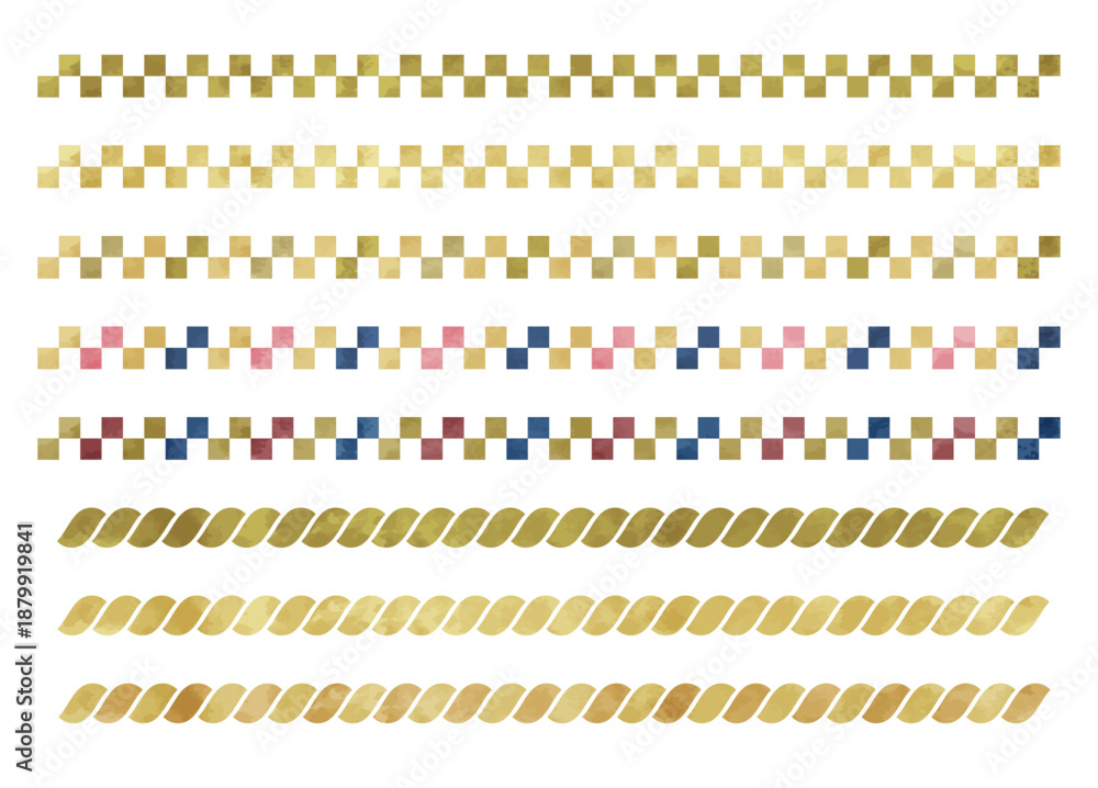 市松と縄の和風なボーダー装飾 水彩タッチのベクターイラストセット #1879919841