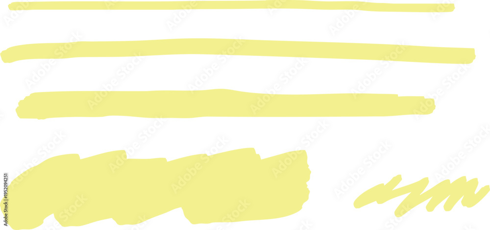 蛍光ペン色の半透明なハイライト、下線、強調線、あしらい装飾ベクター #1952094251