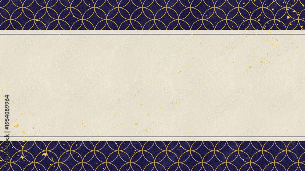 金箔の舞い散る和風のかっこいい背景装飾イラスト 七宝柄 フレーム コピースペース #1954089964