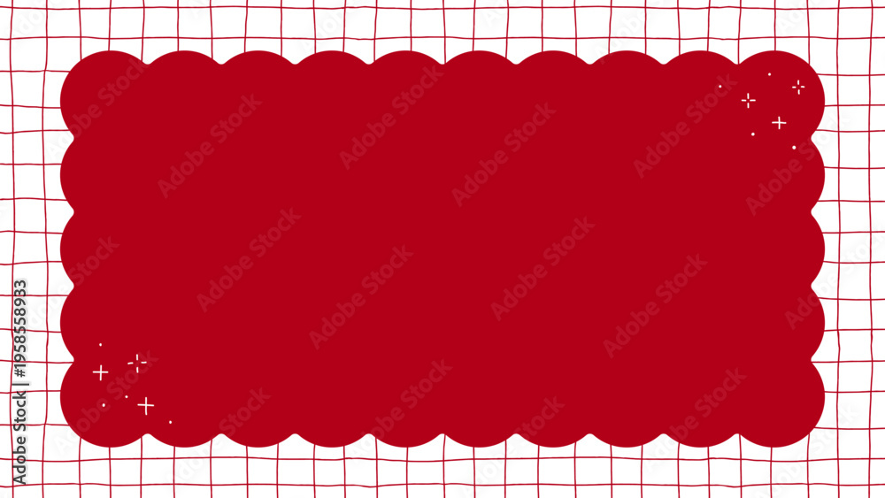きらきらがあしらわれた赤色のシンプルでかわいい背景装飾イラスト もこもこフレーム 格子柄 #1958558933