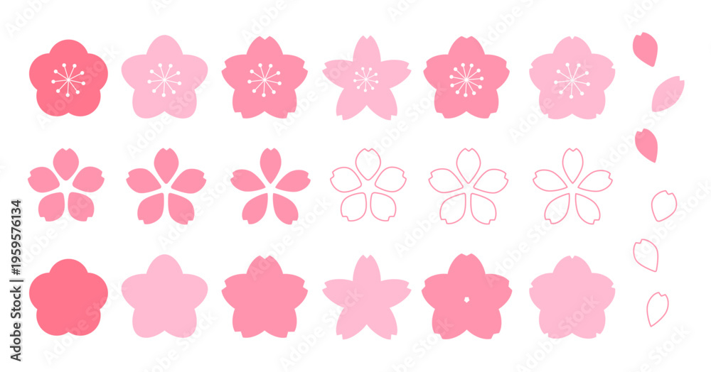 桜の花イラストセット(シルエット・線画・花びらパーツ素材) #1959576134
